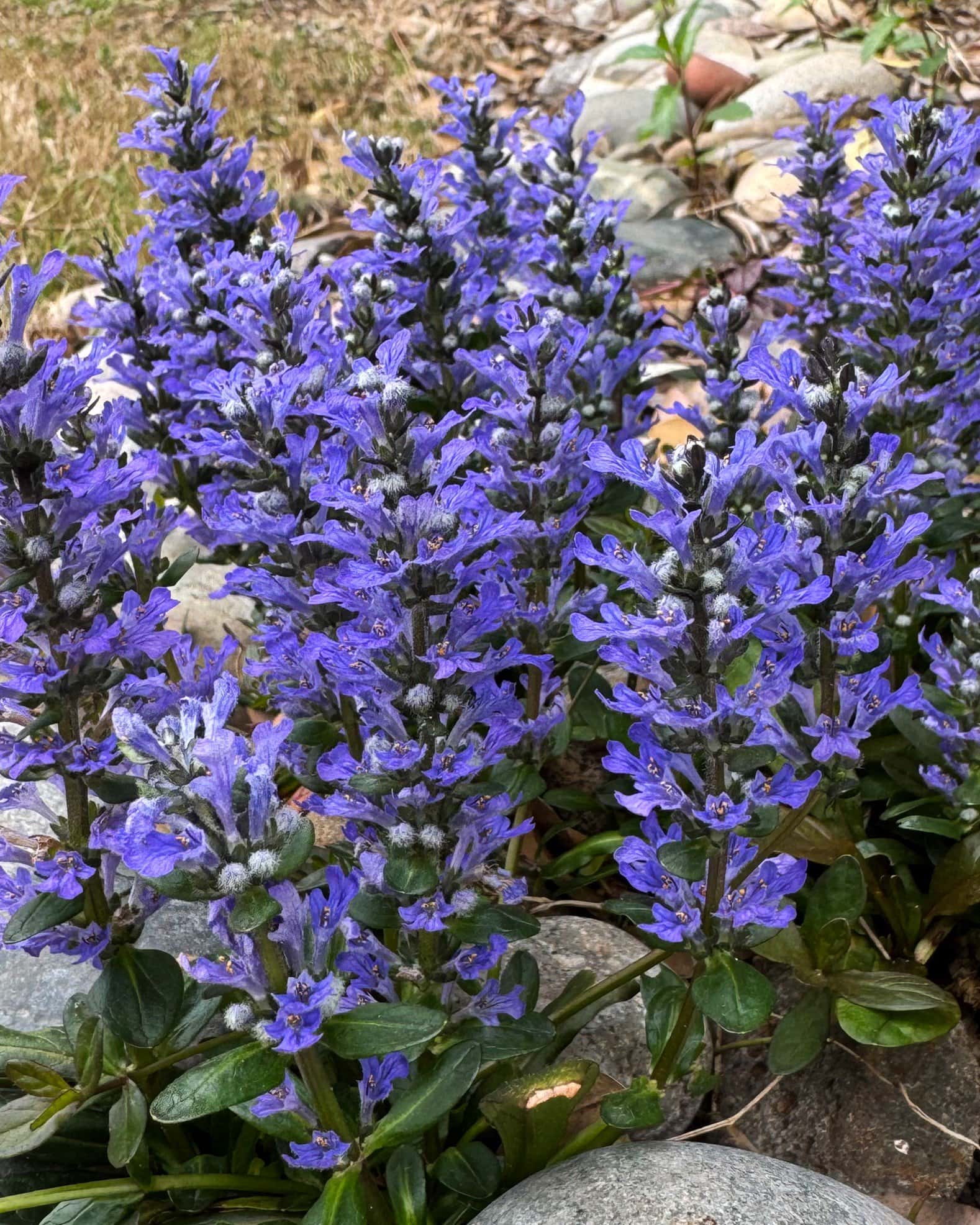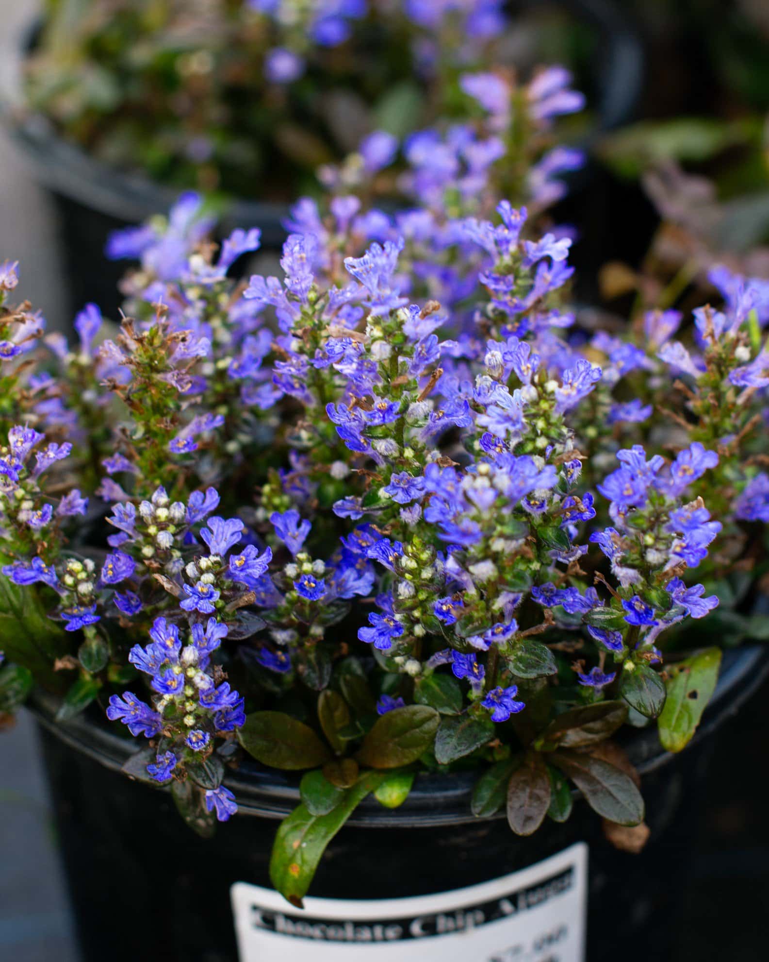 Ajuga reptans ‘Valfredda’The Chocolate Chip Ajuga is a herbaceous groundcover that many in Texas love. It grows only 6 inches in height and 18 inches in width at maturity. This dwarf perennial features foliage it’s often prized for - green to dark purple leaves, with clusters of purple flowers in season. It's perfect for containers and landscapes, but also around stepping stones for a pop of color.