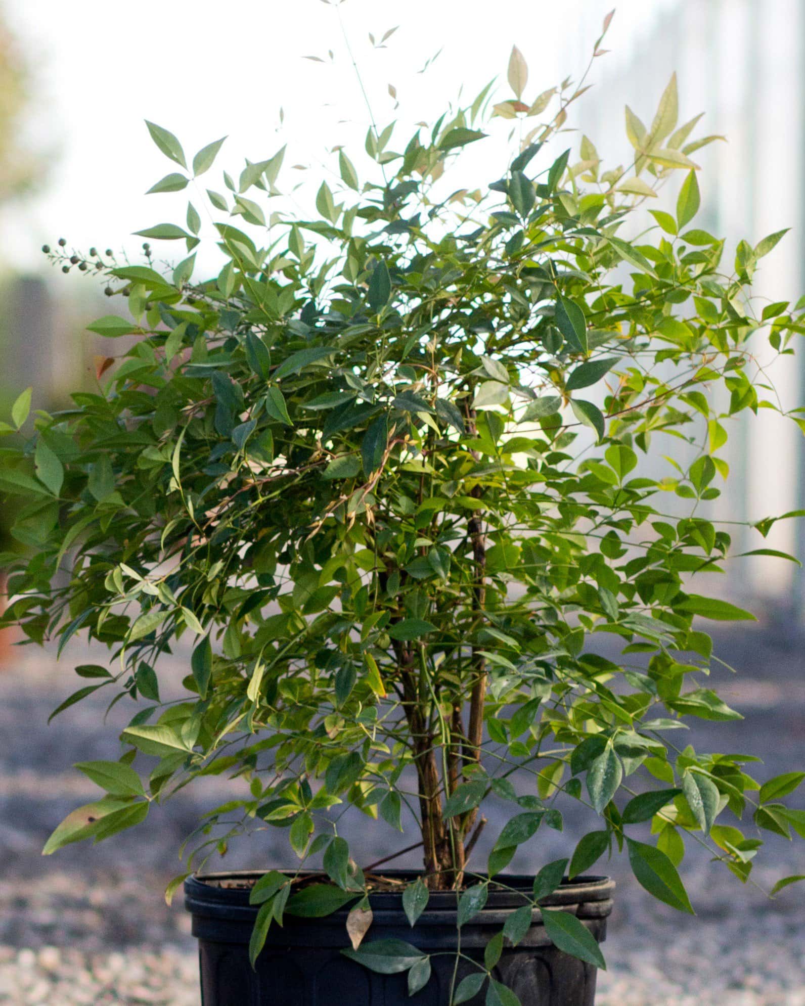 Nandina domestica ‘Compacta’Compacta Nandina is a smaller version of the traditional nandina, offering year-round structure with fine-textured foliage. It grows in a tidy, upright form to about 3 feet tall and 2 feet wide. The green leaves develop red highlights in cooler months, creating subtle seasonal variation without dramatic color swings. Compacta is well-suited for structured plantings, such as walkway borders or foundation beds, and its controlled growth makes it ideal for lower maintenance commercial designs.