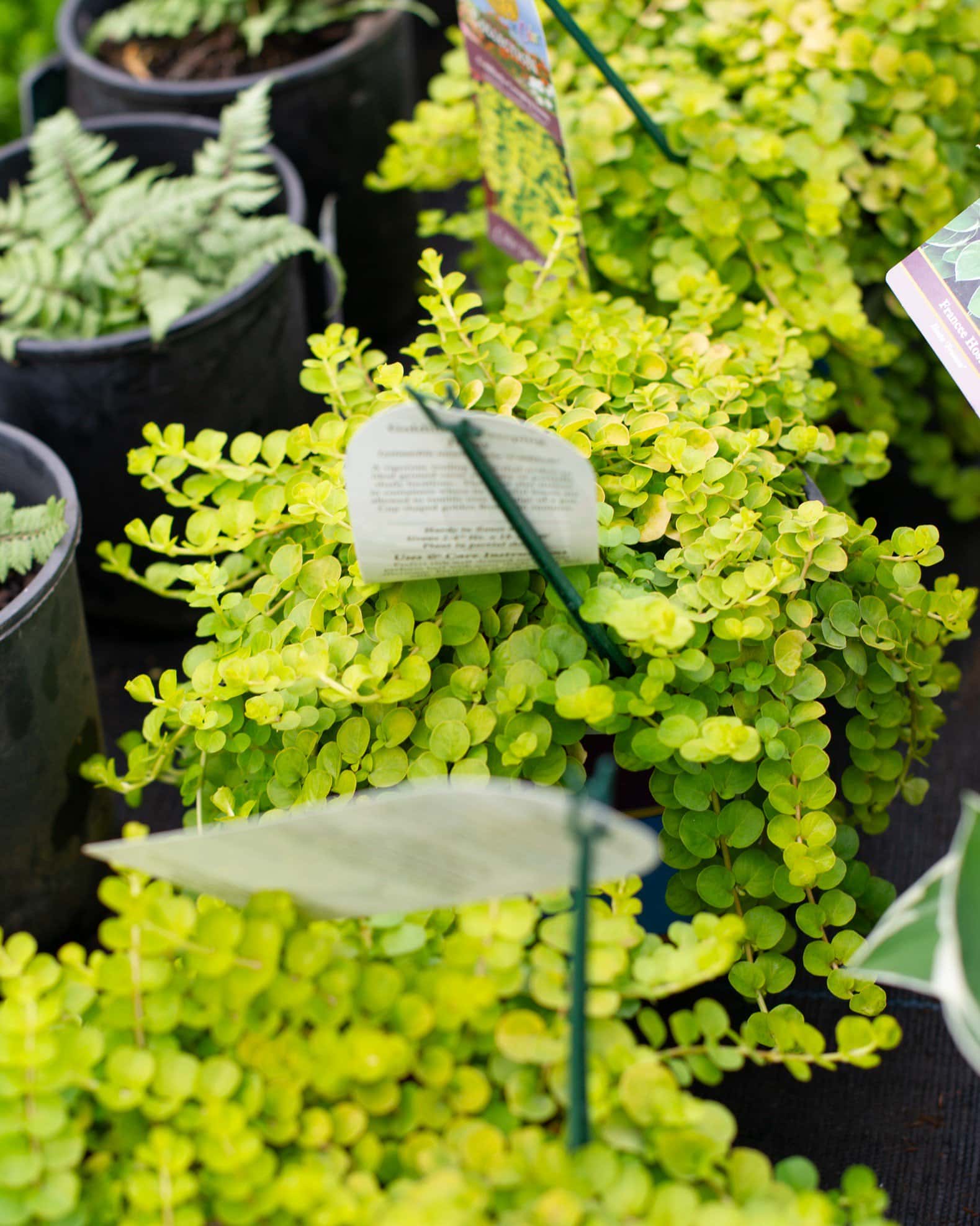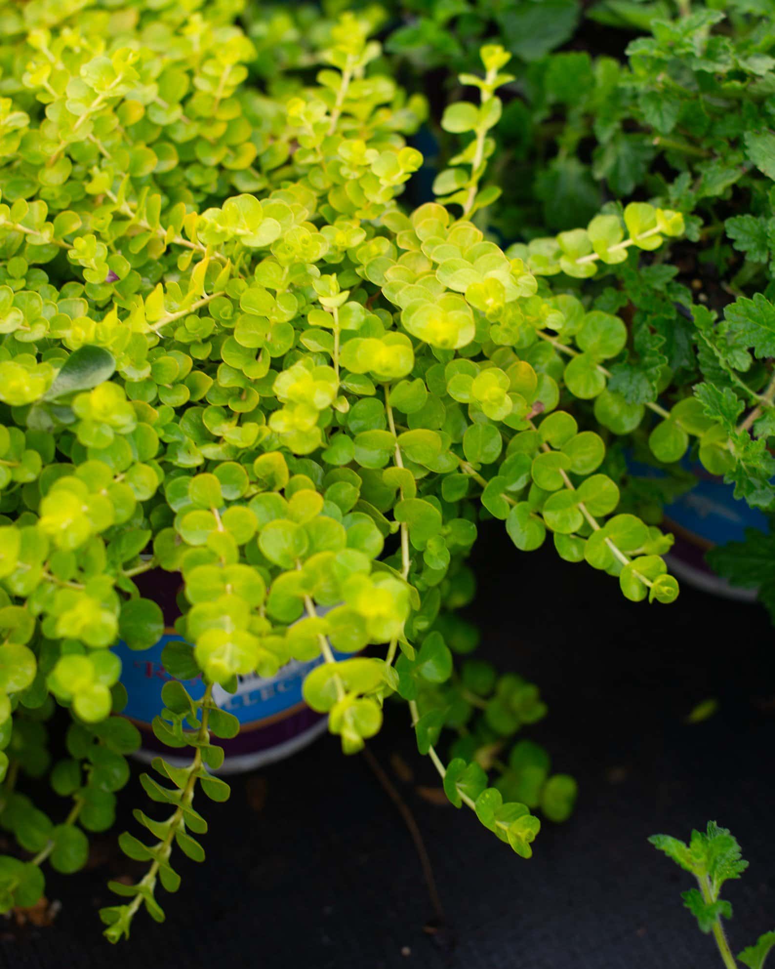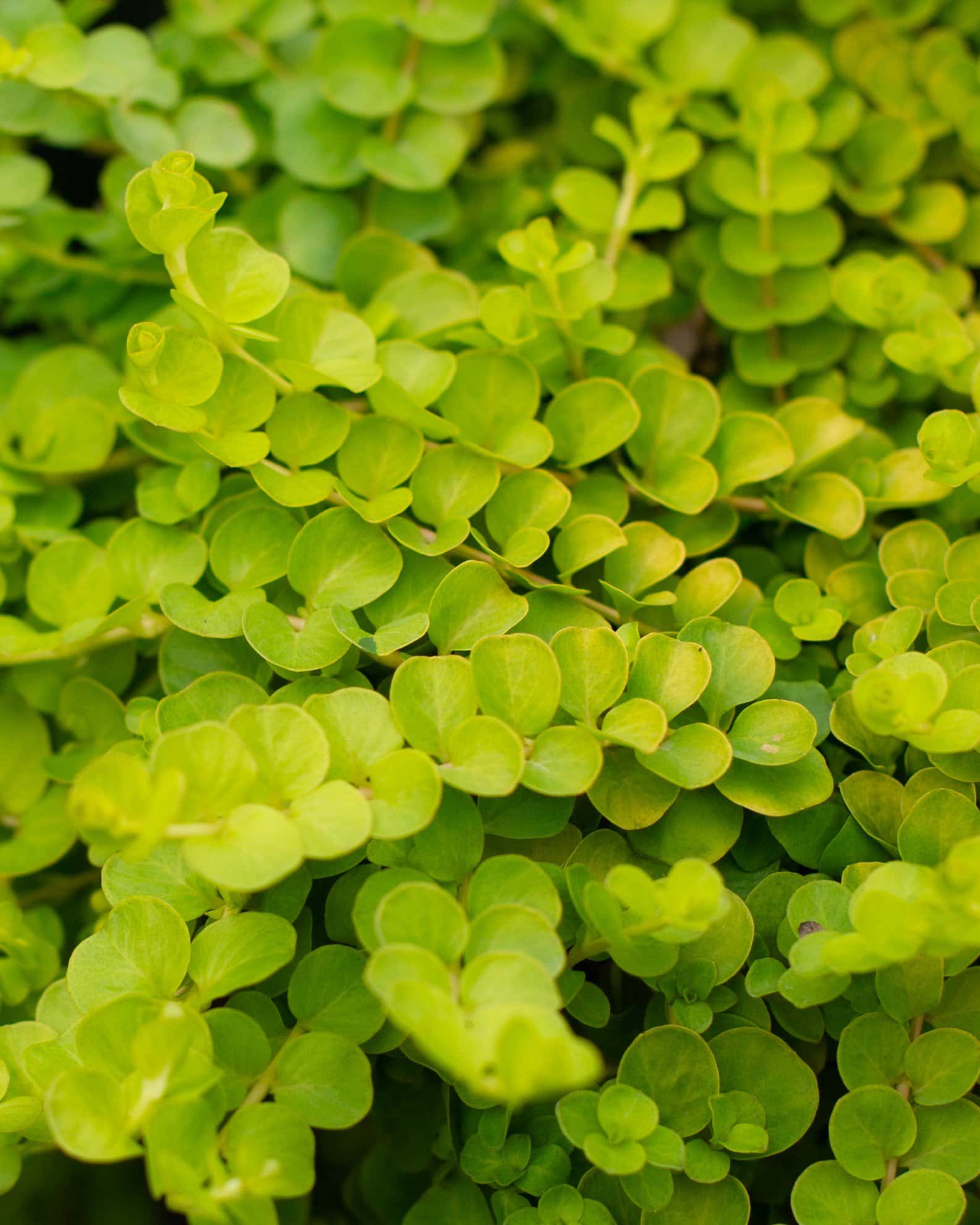 Lysimachia nummulariaThe Creeping Jenny is an evergreen groundcover that's perfect for adding greenery to your space. It's loved for its rounded green and yellow leaves, and an occasional golden flower during season. This plant only grows 6 inches in height and 12 inches in width, but its spreading habits are something to watch for. While the Creeping Jenny will do beautifully in beds, it's usually put into containers for control purposes.