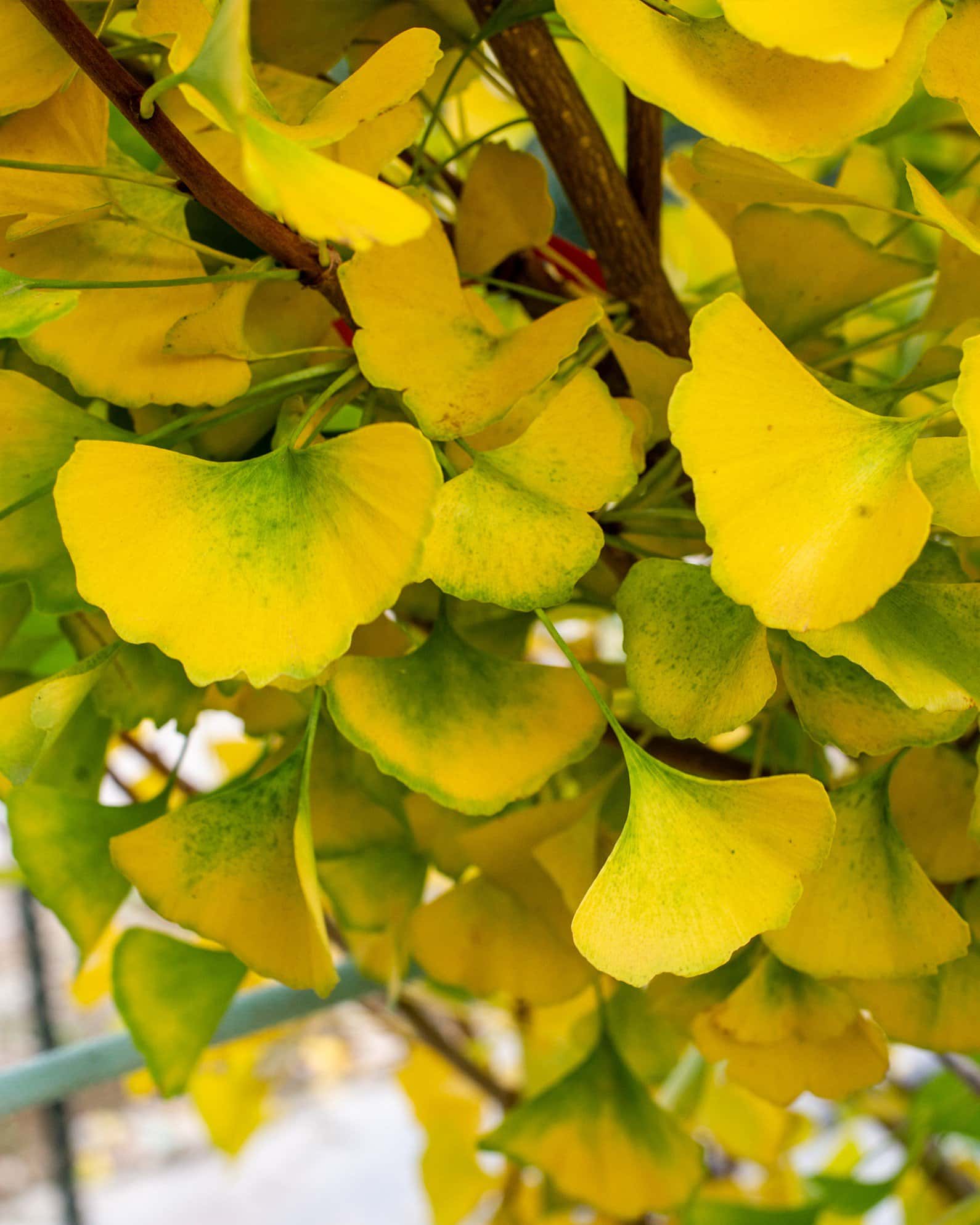 - Classic fan-shaped leaves turn vivid yellow in fall