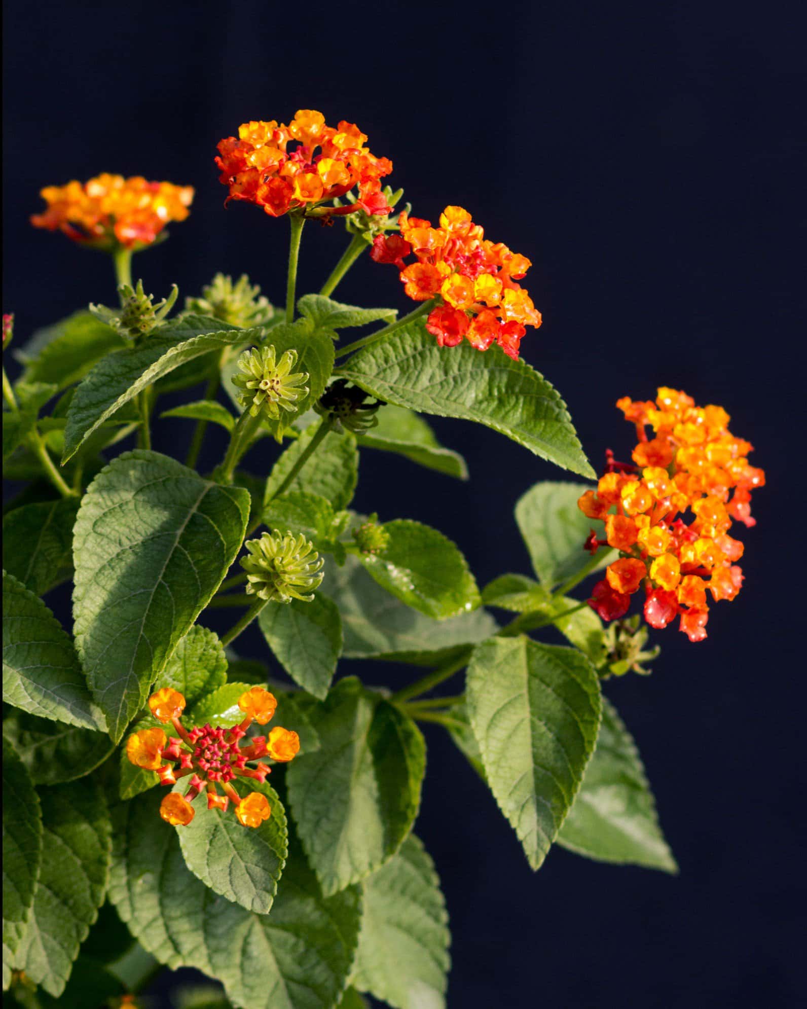 Lantana camara ‘Hot Blooded’Hot Blooded Lantana is prized for its unique, vibrant flowers. This compact shrub produces clusters of red, orange, and yellow flowers that bloom from spring through fall. It's a magnificent choice for borders, containers, and hanging baskets. It's suitable as an annual groundcover in the North Texas climate due to its spreading habit. It reaches up to 1.5 feet tall and 1.5 feet wide at maturity. It reaches maturity approximately 3-4 months after planting.