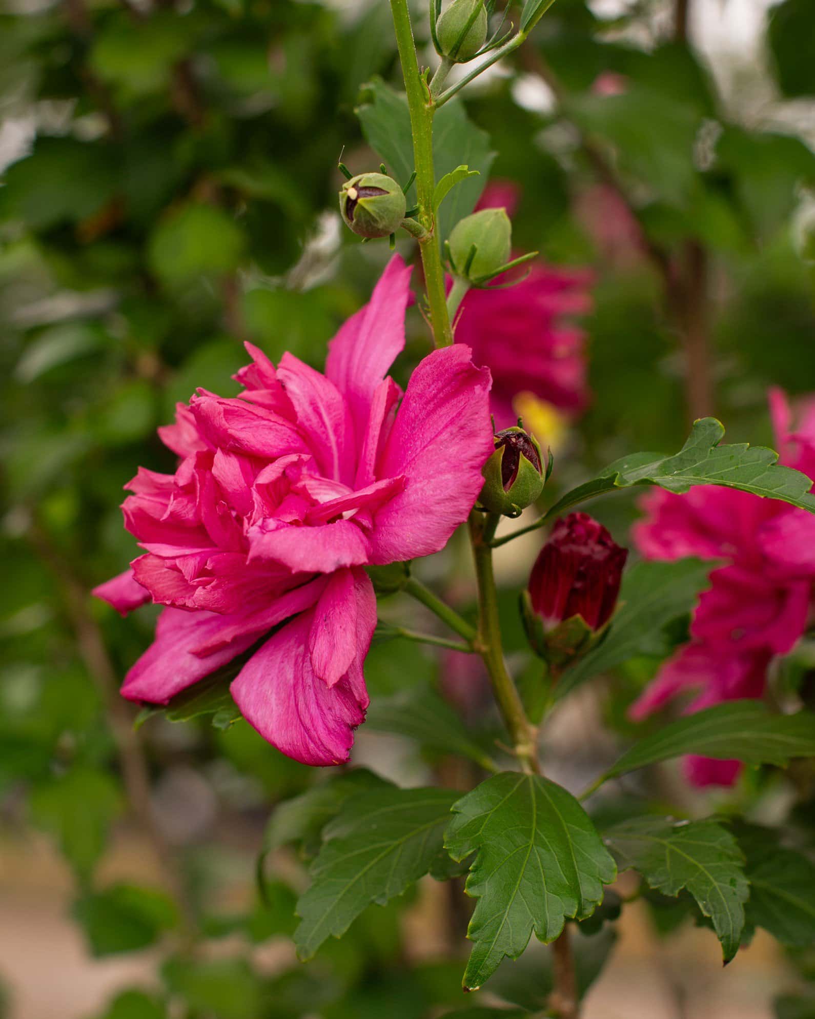 Hibiscus syriacus ‘Lucy’Lucy Althea Tree Form is a compact flowering tree that knows how to steal the show. With its striking magenta-red double blooms and tidy silhouette, this tree-form Althea adds charm and color to even the smallest spaces. Growing 8 feet tall and 5 feet wide, she fits beautifully along walkways, in front yards, or as a cheerful patio focal point. The blooms appear from spring into summer, offering a steady parade of color when other plants are winding down.